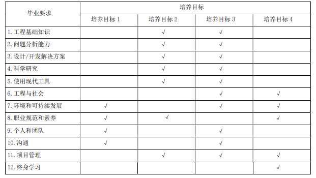表 1 毕业要求对培养目标的支撑情况